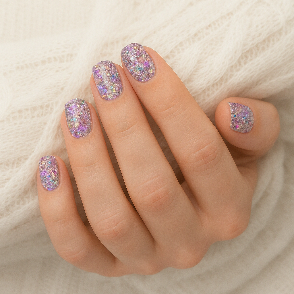 Մարմնագույն նուդ վարդագույն նուրբ փայլուն, ինչպես աստղային մառախուղ ձեր եղունգների վրա։ Բնական և փայլուն էֆեկտ, որը շքեղացնում է ձեր ձեռքերը նրբորեն և էլեգանտությամբ։