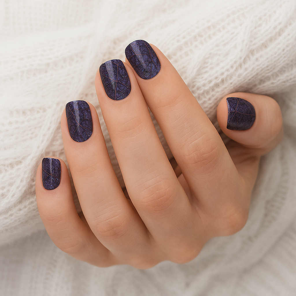 Մի տիեզերական մանուշակագույն, որը անցնում է մանրաթելային նմուշներով, հիշեցնելով հանքային երակներ կամ սառույցում սառած ծառի ճյուղեր։ Նրա կապույտ փայլերով այս մանիկյուրը հիշեցնում է գաղտնի և էլեգանտ աստղազարդ գիշեր։