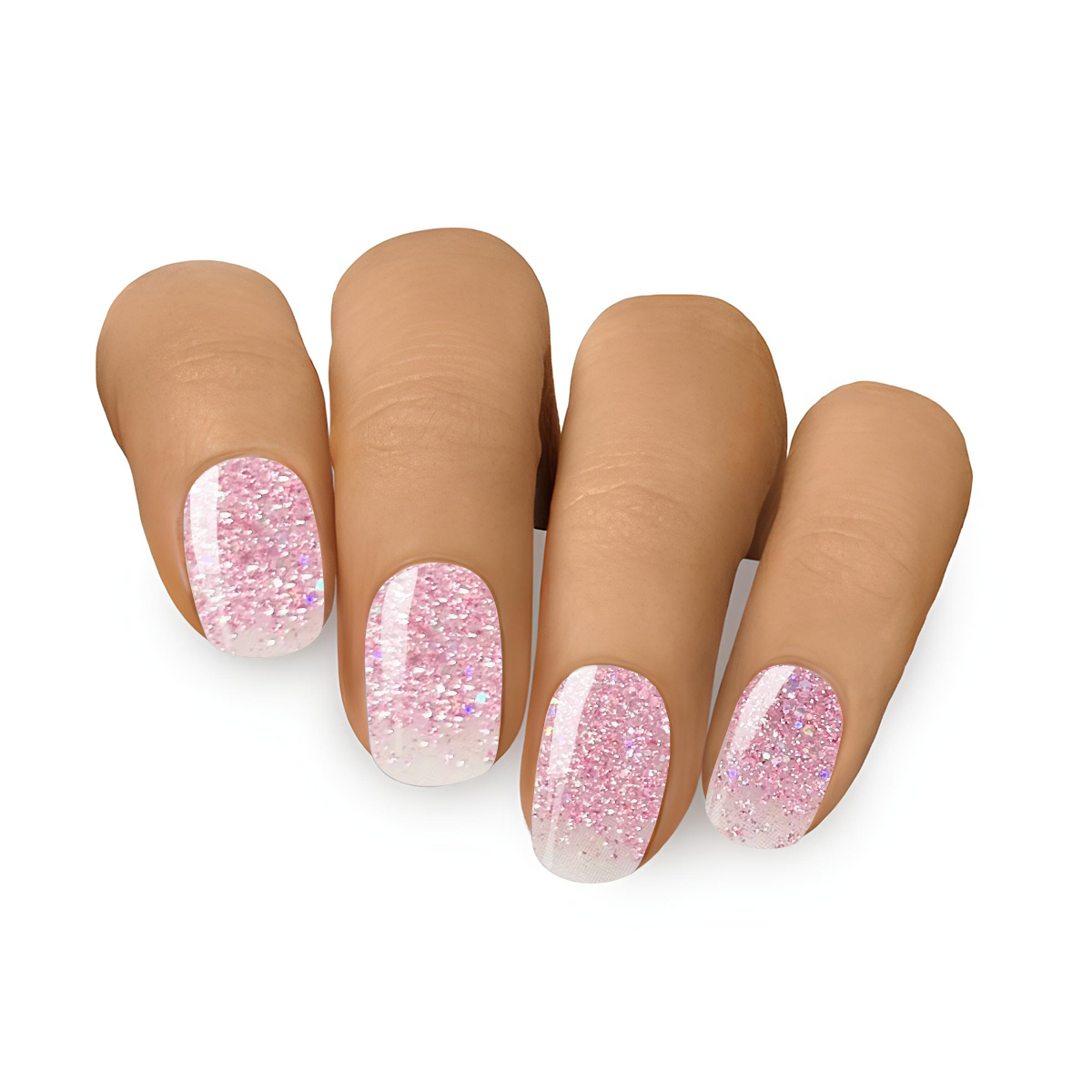 Թափանցիկ վարդագույն և սպիտակ փայլուն դեգրադե` նուրբ և հեքիաթային մանիկյուրի համար, որը գրավում է լույսը յուրաքանչյուր շարժման ժամանակ։ Հատուկ շեշտում է էլեգանտությունը կախարդական շոշափումով։