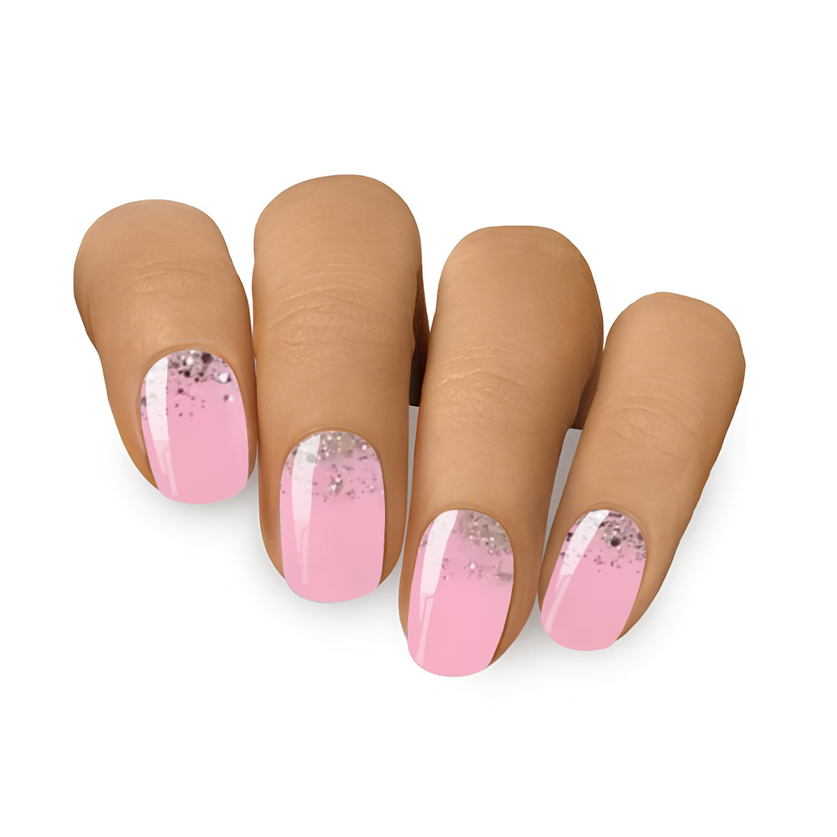 Բաց վարդագույն շաքարավազի երանգ, զարդարված արծաթագույն փայլերով՝ քաղցր և տոնական շեշտադրումով։ Ուրախ և փայլուն մանիկյուր, իդեալական ձեր օրերը ոճով լուսավորելու համար։